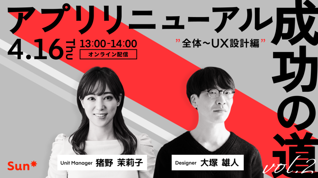 本ウェビナーでは、「アプリリニューアル成功の道vol.2 全体〜UX設計編」と題し、ビジネス戦略と連動したアプリリニューアルの全体像を解説します 。