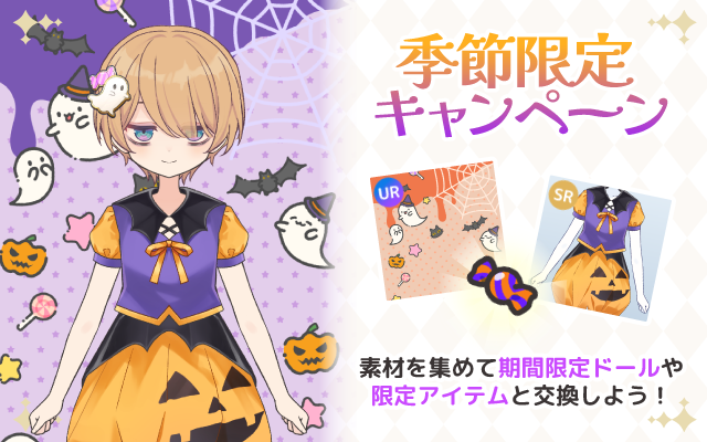 また、季節限定の「ハロウィンキャンペーン」も開催中です。おおきな耳に鋭い爪で狼男に変身できるアイテムが入ったプレミアムガチャ「幻惑ハロウィンナイト」ともあわせて、ハロウィンコスチュームをお楽しみください。