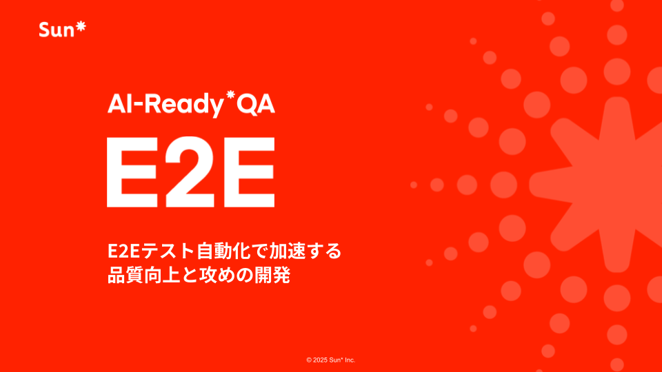 株式会社Sun Asterisk(本社:東京都千代田区、代表取締役:小林 泰平、以下「Sun」)は、AIを活用してE2Eテストを自動化するソリューション「AI-Ready* QA E2E(読み:えーあいれでぃー きゅーえー いーつーいー)」の提供を開始したことをお知らせします。