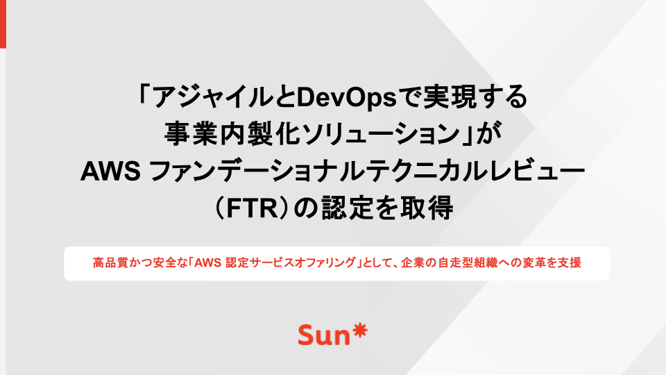 Sun*の「アジャイルとDevOpsで実現する事業内製化ソリューション」がAWS ファンデーショナルテクニカルレビュー(FTR)の認定を取得