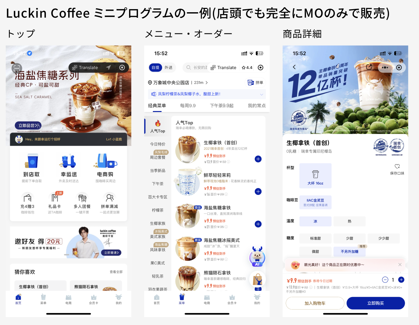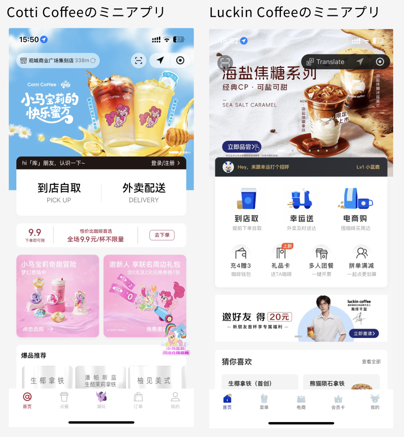 出典:Luckin Coffeeミニプログラム / Cotti Coffeeミニプログラム