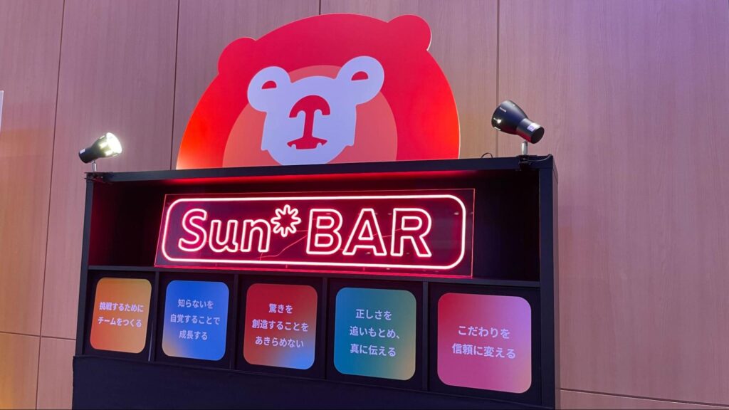 ブースのコンセプトは「Sun*のオフィスにあるバーカウンターを再現しちゃおう!」