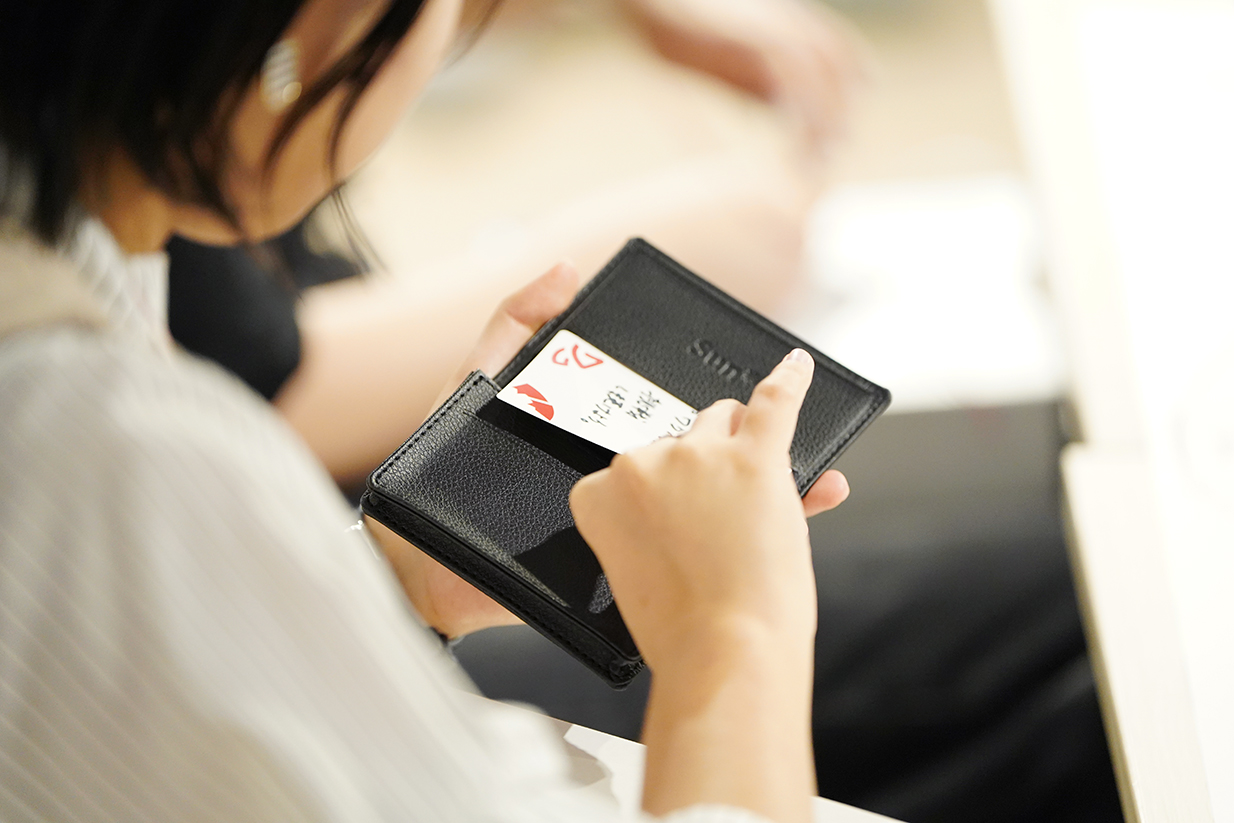 最後に、この目標カードをノベルティのカードケースに入れて、今回のワークショップは終了です。4月の入社式で改めて見返すことで、内定式で考えた自分の想いや目標を思い出し、これからの一歩を踏み出すきっかけにしてもらえたらと考えています。
