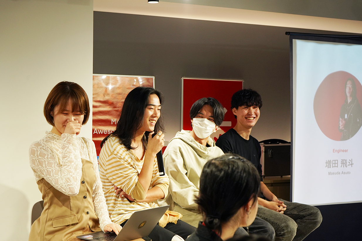パネルディスカッションでは、プロジェクトマネージャー・デザイナー・エンジニア・TPFといった異なる職種から、若手社員4名が登壇しました。ディスカッションのテーマは以下の4つです。