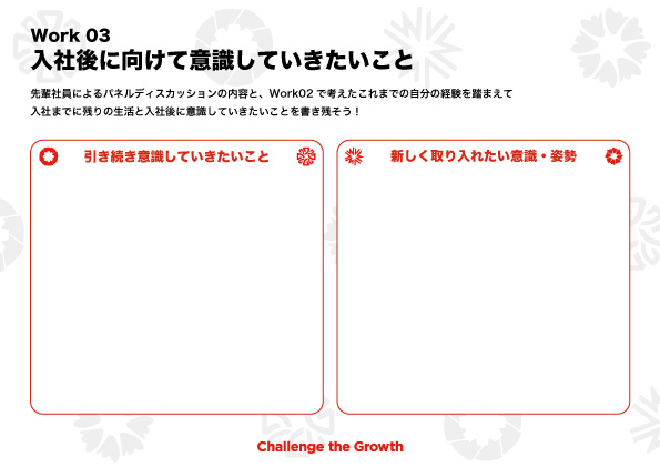 - すべてのワークを通して「成長」を共通のキーワードとすること