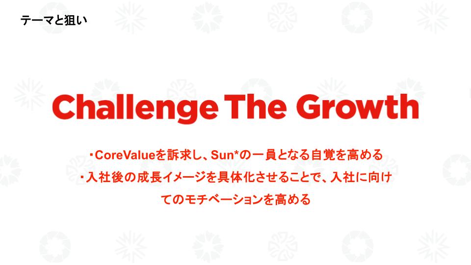 「Challenge The Growth」という内定式全体のテーマに込めた狙いは、以下の2点です。