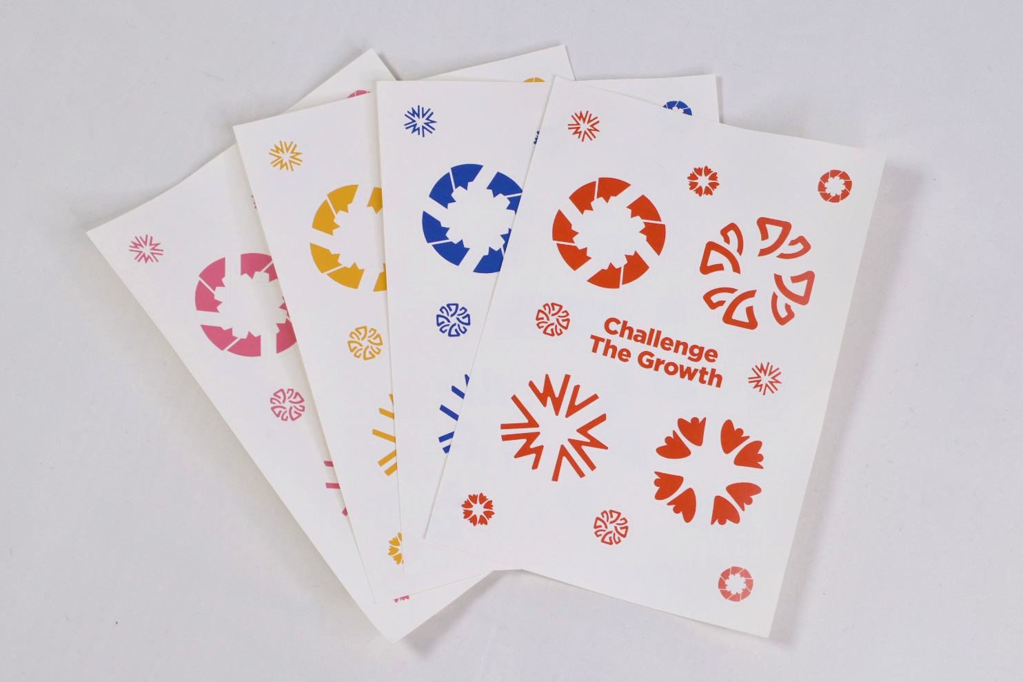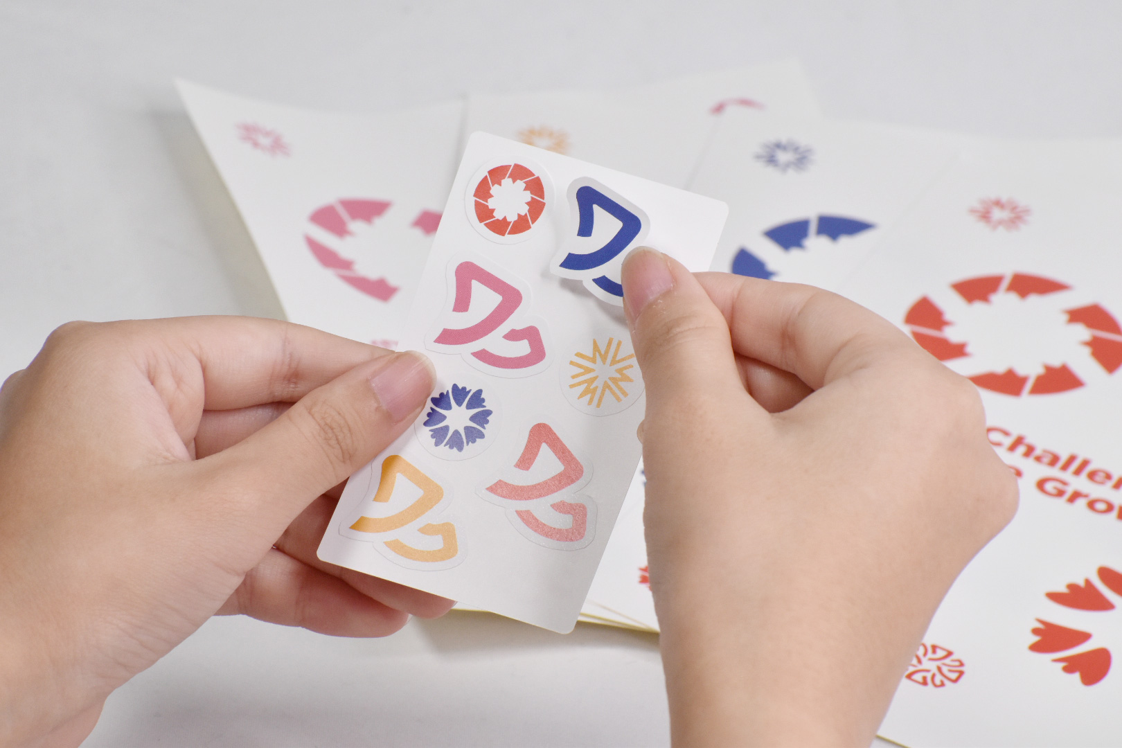 A5サイズのステッカーシートにモチーフを並べたものを4色展開で作成しました。大きいモチーフはパーツごと切り離せるようになっているので、自由に組み合わせて自分だけの「WA!」を作ることができます。