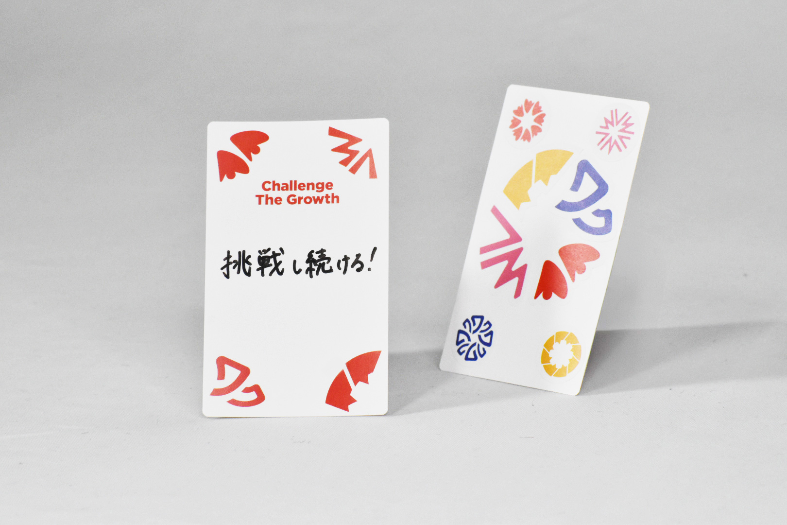 また、カードの裏面には、キービジュアルのコンセプトである「WA!」をモチーフにしたステッカーを使って、内定式で感じたことを表現するアクティビティも実施しました。ステッカーの使い方や配置、色の組み合わせなど、それぞれの個性が感じられる仕上がりになりました。