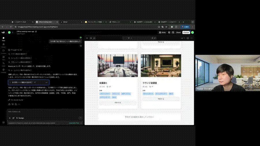次のステップでは、UIデザインとコード生成を行う「vercel v0(バーセル ブイゼロ)」をAIツールとして使用しました。
