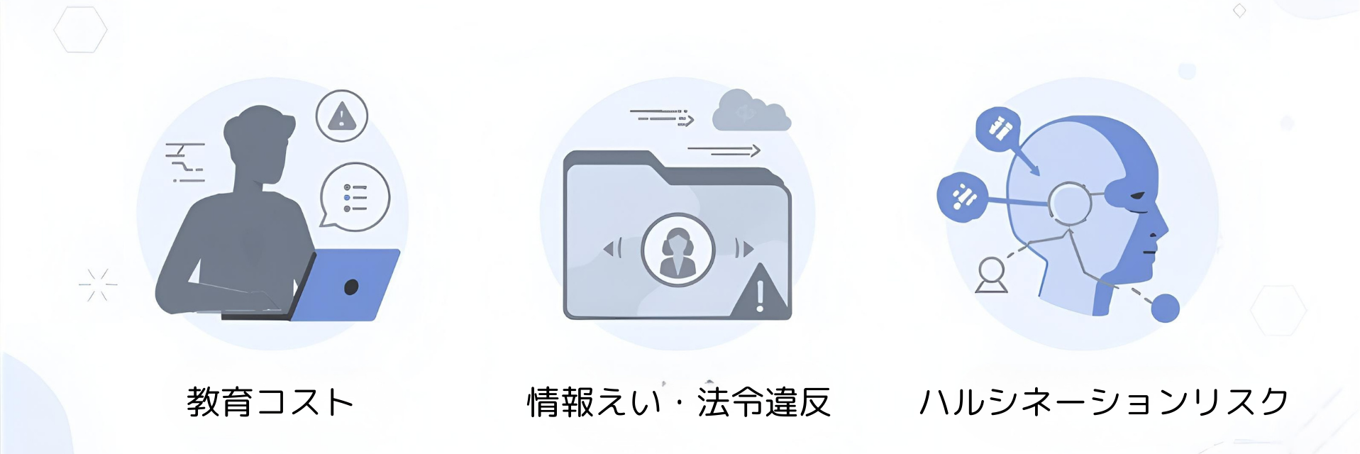 生成AIは、存在しない情報をあたかも事実のように生成してしまう現象(ハルシネーション)のリスクを抱えています。実在しない資料名や誤った統計データが出力されるなど、意図せず誤情報が拡散されるリスクには注意が必要です。
