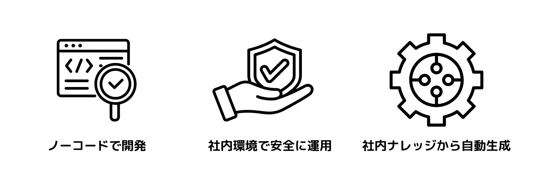 RAGと呼ばれる仕組みも備えており、社内ドキュメントを参照しながら自然な回答を返せます。複雑な設計を覚える必要がなく、テンプレートを選ぶだけで試作品も作れるため、現場の担当者でも業務に沿ったAIアプリを短期間で導入できます。