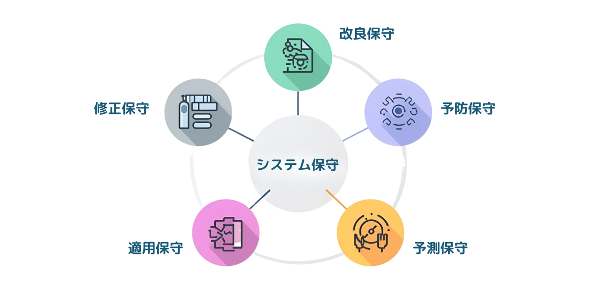 業務システムの保守といっても、その目的や対応範囲によって複数の種類に分かれます。ここでは、それぞれの特徴や役割について解説します。