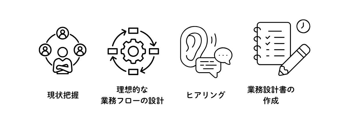 業務設計は、現状を正しく把握し、理想の業務像へとつなげるための整理工程です。ここでは、ヒアリングから設計書の作成まで、具体的な流れについて解説します。