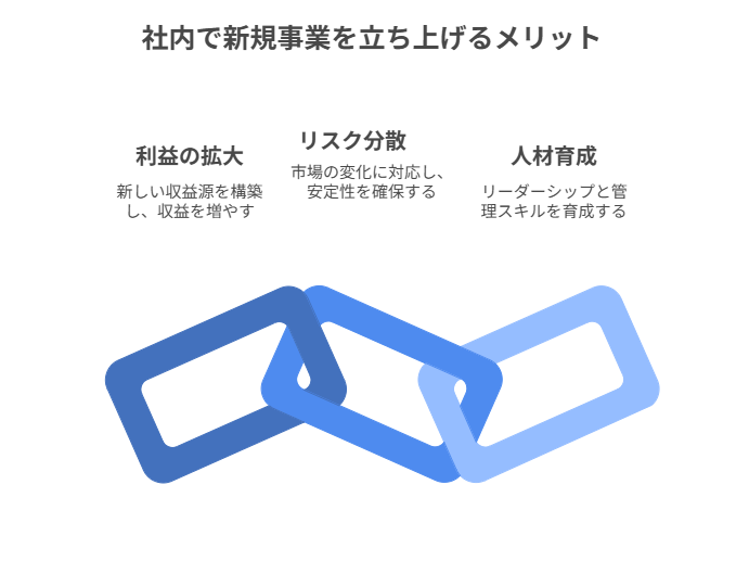 社内の新規事業の立ち上げは、収益の確保やリスク分散などが可能です。ここでは、新規事業を立ち上げるメリットを解説します。