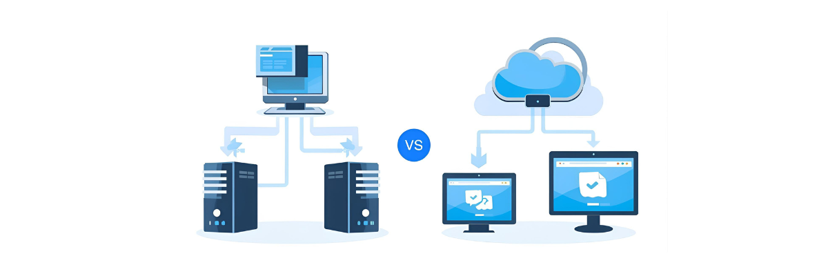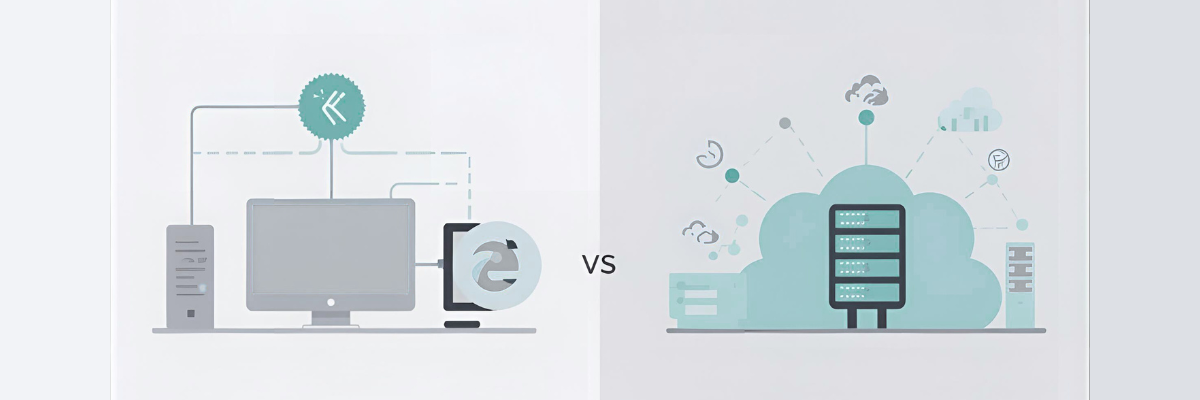 従来のオンプレミス型では、社内サーバーや端末ごとの管理・更新作業が煩雑で、運用負担が大きいという課題がありました。そのため、業務システムをWeb化することで、業務データやプログラムをサーバー上で一元管理でき、端末ごとのインストールや更新作業が不要になります。
