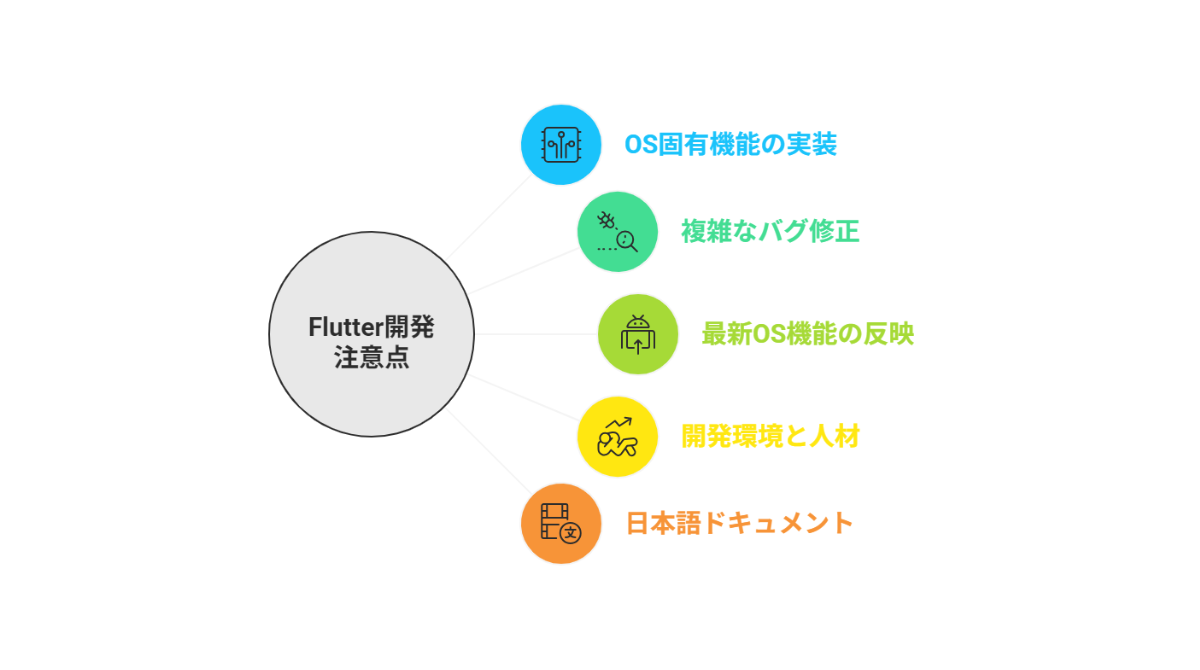 Flutterは効率的にマルチプラットフォームへ展開できる一方、導入前に把握しておきたい特有の制約もあります。ここでは、開発中に発生しやすいポイントを整理し、検討段階で注意すべき内容について解説します。