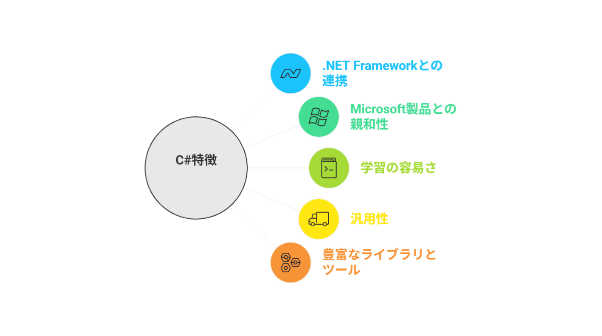C#はMicrosoftが整備した仕組みを使えるため、企業で使う業務ツールや社内システムとの相性のよさが特徴です。読みやすい文法や豊富なライブラリも備えており、企業規模を問わず取り入れやすい言語です。