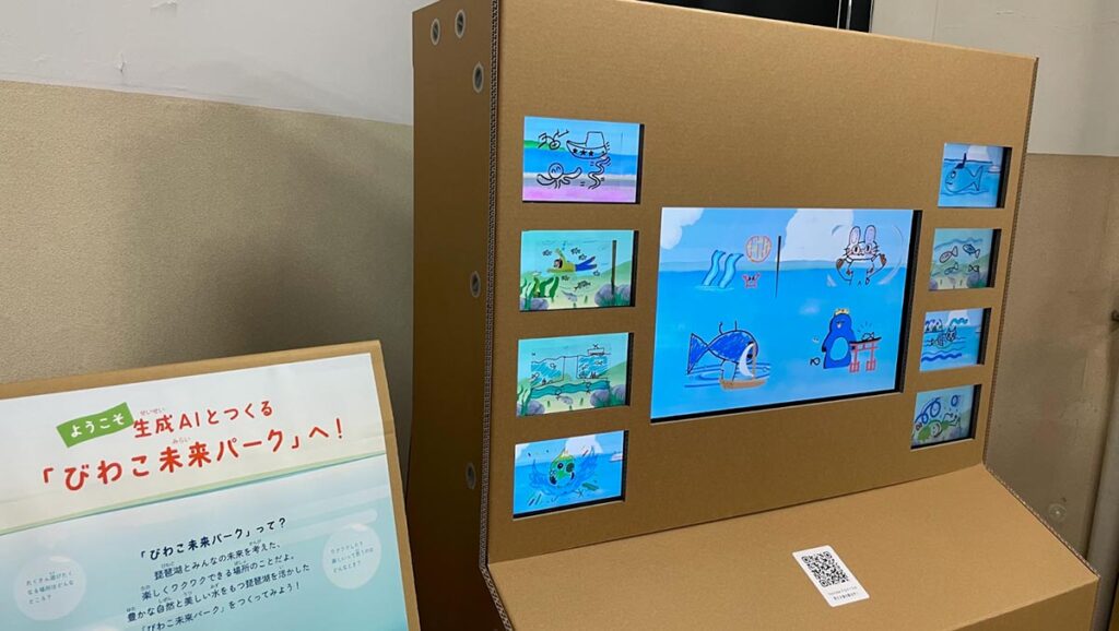 2025年3月末、滋賀県彦根市で開催された地方創生をテーマにしたイベント「滋賀 FUTURE THINKING WEEK」 。その一角で、子どもたちの創造性がテクノロジーと出会う、特別な体験型アート展示が生まれました。10日間で約2,500人が来場したこのイベントで、Sun*は子どもたちがAIとのポジティブな初対面を果たすためのAIアート体験ブース、生成AIとつくる「びわこ未来パーク」の企画から実装、運営までを一気通貫で担当しました 。